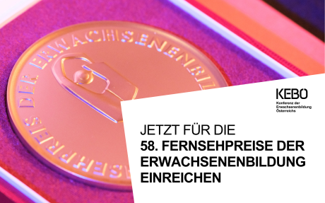 15.01.2026Die zehn Verbände der Konferenz der Erwachsenenbildung Österreichs (KEBÖ) vergeben auch heuer wieder den Fernsehpreis der Erwachsenenbildung und laden Interessierte herzlich ein, Ihre Beiträge bis spätestens 02. März 2026 einzureichen!